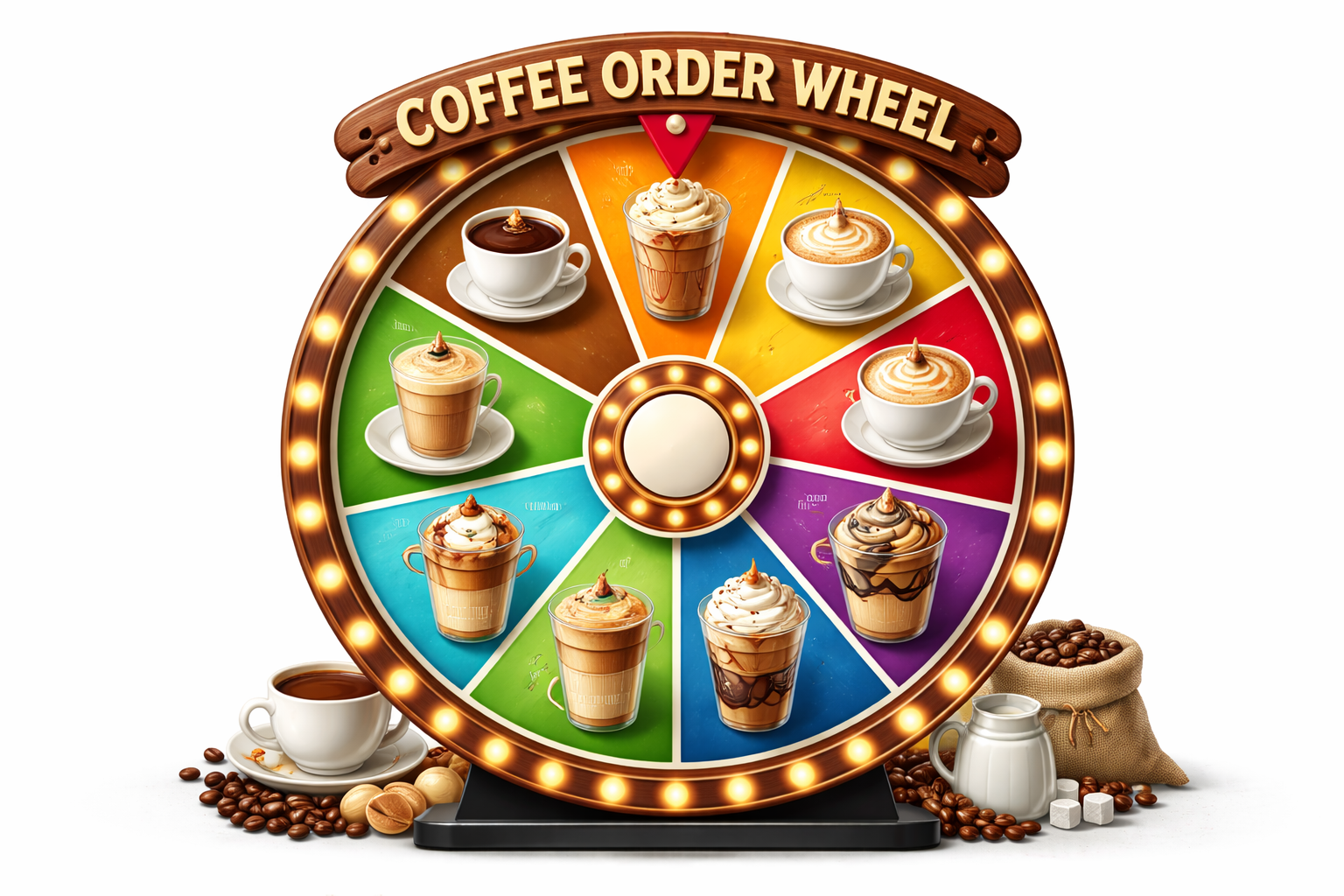 The Coffee Order Wheel works well for solo coffee runs, office coffee breaks, café dates, road trip stops, and group coffee orders. It is especially useful when you want to try something new or when multiple people are asking the same question at once. The spinning format adds a small moment of excitement, which makes even a simple coffee choice feel more playful.