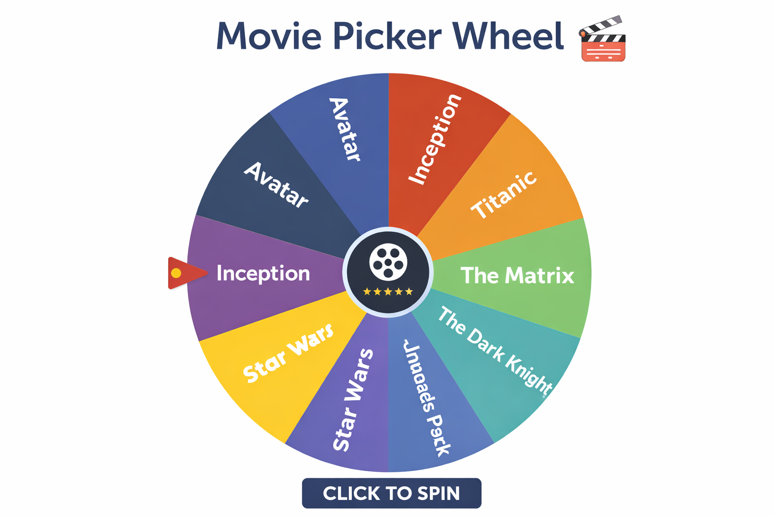 For the best experience, include movies you would genuinely watch and mix different styles to keep the wheel useful. A balanced list of comedy, action, animation, thriller, romance, and feel-good picks can make every spin more interesting. Add your movie list, spin once, and start your next watch without the usual indecision.